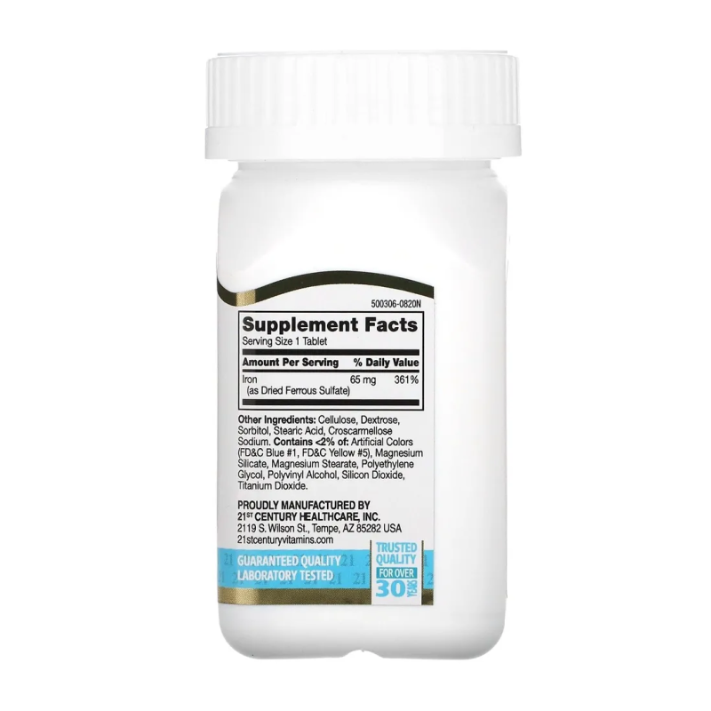 Железо (в виде сухого сульфата железа), целлюлоза, декстроза, стеариновая кислота, кроскармеллоза натрия.