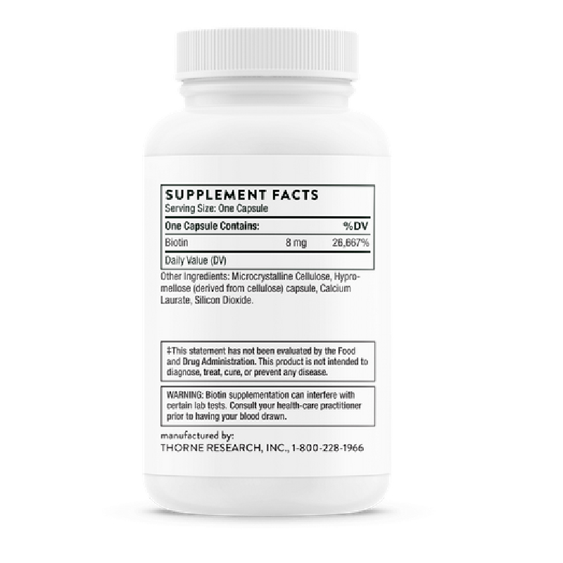 БАД с биотином содержит большое количество биотина (также иногда называемого витамином B7) в одной капсуле. Польза биотина для прочности ногтей была продемонстрирована в клиническом исследовании, в ходе которого 45 пациентов с ломкостью ногтей получали 2,5 мг биотина перорально в течение 1,5–7 месяцев. 91% участников продемонстрировали «определенное улучшение», их ногти стали более крепкими в среднем после двух месяцев приема добавок. Биотин также поддерживает здоровье кожи, волос и работу нервной системы. Биотин в большем количестве, как, например, в добавке с биотином от Thorne, способствует метаболизму глюкозы, стимулируя вызванную глюкозой секрецию инсулина в бета-клетках поджелудочной железы и ускоряя метаболизм глюкозы в печени. Также биотин может повысить чувствительность мышц к инсулину за счет повышенного усвоения глюкозы мышечными клетками