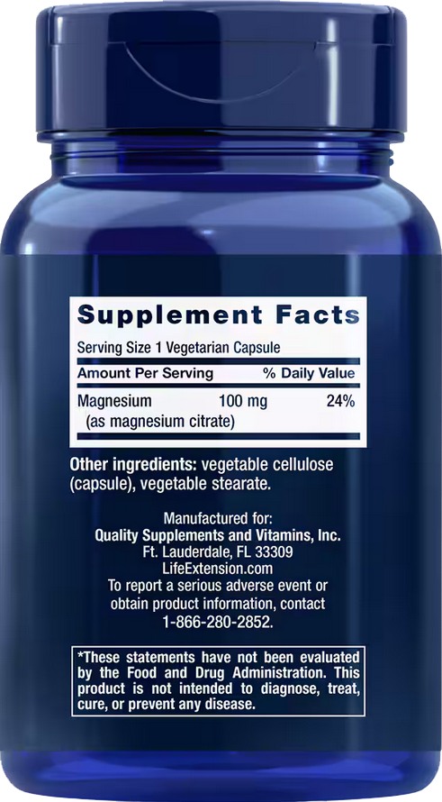 Магний (в форме оксида магния, цитрата, сукцината), микрокристаллическая целлюлоза, растительная целлюлоза (капсула), стеариновая кислота, диоксид кремния.
