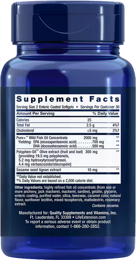 БАД «Лайф Экстеншн Супер Омега-3», 60 мягких капсул с кишечно-растворимым покрытием