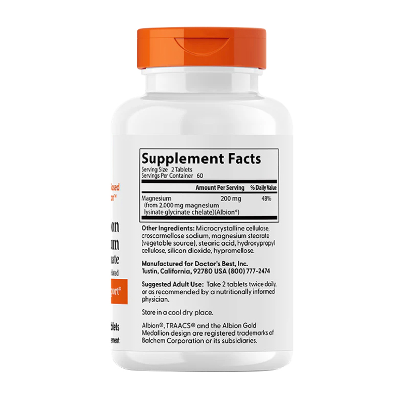 Doctor’s Best использует запатентованную, органическую хелатную формулу. Это позволяет магнию быть биодоступным и легко переносимым для желудочно-кишечного тракта. Веганский продукт не содержит ГМО, глютен и сою, усваивается легче, чем аналоги.