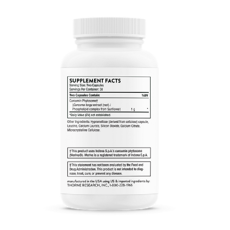 Фитосомы куркумина от Thorne Research — это наиболее клинически изученный куркумин на рынке, он помогает поддерживать здоровую воспалительную реакцию в суставах, мышцах, желудочно-кишечном тракте, печени, мозге и нервах.
