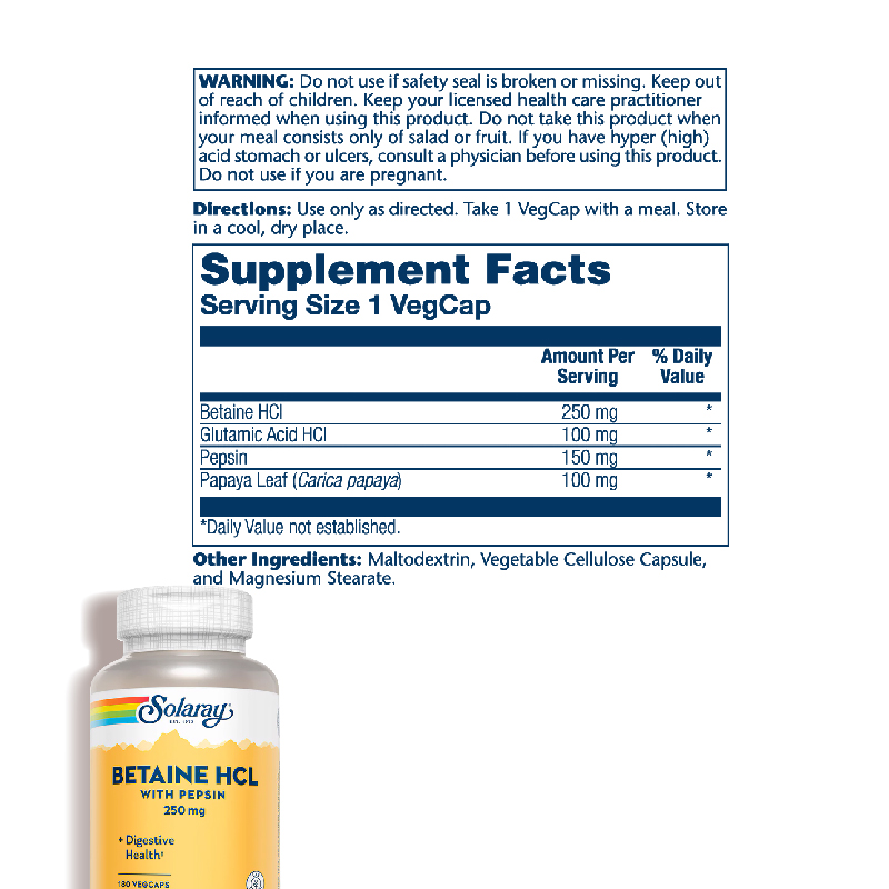 БАД «Соларей Бетаина Гидрохлорид с Пепсином, («Solaray Betaine HCL with Pepsin»)