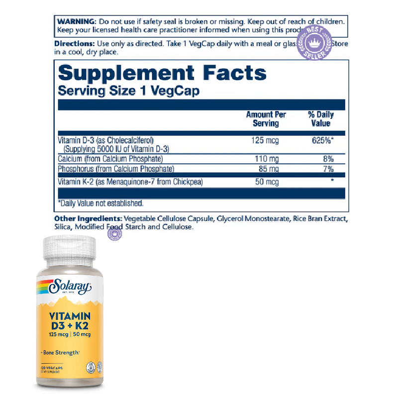 Обычно витамин D попадает в организм из еды либо вырабатывается кожей под воздействием солнечных ультрафиолетовых лучей. Однако в еде он содержится в недостаточном количестве. Поскольку многие люди стремятся избегать воздействия солнца, то необходимость в дополнительном приеме витамина D становится все более насущной. Витамин К способствует лучшему усвоению витамина D, а также правильному распределению кальция в организме. Позволяет правильно усваивать кальций для более здоровых и крепких костей и зубов. Улучшает обмен веществ в организме, состояние иммунной системы. Поддерживает кровообращение и здоровье сердца