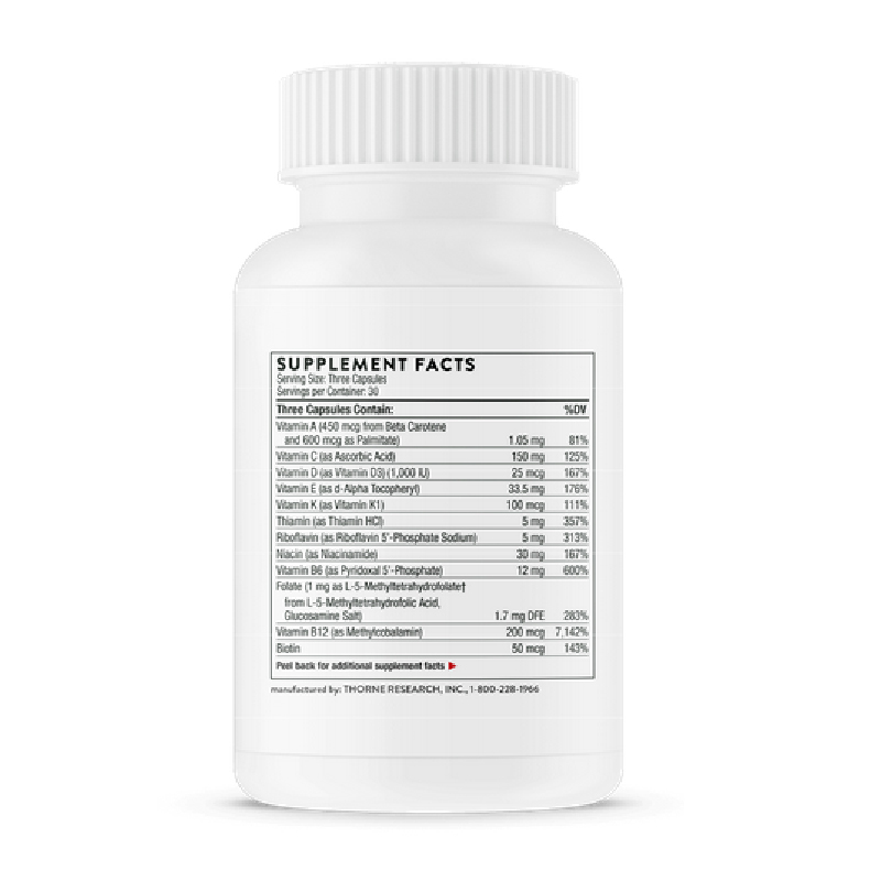 Центры по контролю и профилактике заболеваний рекомендуют прием фолиевой кислоты всем женщинам детородного возраста, так как наибольшая потребность возникает в первом триместре, когда женщина может даже не подозревать о своей беременности. Женщина, которая придерживается здорового питания и имеет достаточное количество фолиевой кислоты в организме, может снизить риск рождения ребенка с врожденным дефектом головного или спинного мозга. Женщинам иногда бывает трудно «переваривать» высокоэффективные поливитаминные или минеральные пищевые добавки, особенно в первом триместре беременности. В связи с этим Thorne не содержит большого количества питательных веществ, обычно вызывающих расстройство желудка. Вместо этого питательные вещества включены в меньшем количестве, но в оптимальной форме для легкого усвоения в тканях и оптимального использования. Среди них активные формы нескольких витаминов группы B — пиридоксаль-5′-фосфат (витамин B6), рибофлавин-5′-фосфат (витамин B2), L-5-MTHF (активная форма фолата) и метилкобаламин (витамин B12). Поскольку кальций в больших количествах может вызвать расстройство желудка, используется умеренное количество в хорошо усваиваемых формах цитрата и малата